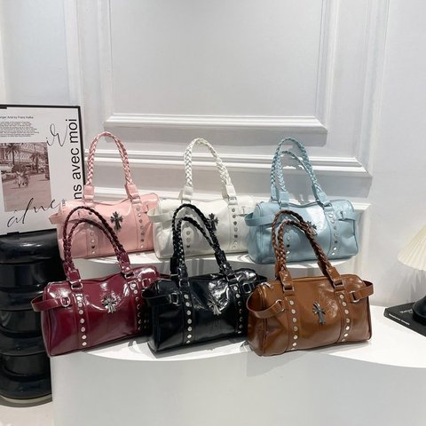 Y2K Hot Girl Style Bolso de mano para motocicleta para mujer Estilo punk Bolso de hombro de mano de gran capacidad Bolso espacioso para motocicleta para mujer