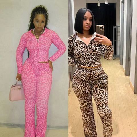 Traje ceñido al cuerpo con estampado de leopardo de 2 piezas para mujer, chaqueta con capucha de manga larga, pantalones acampanados cortos, ropa de calle Sexy para Club informal ajustado